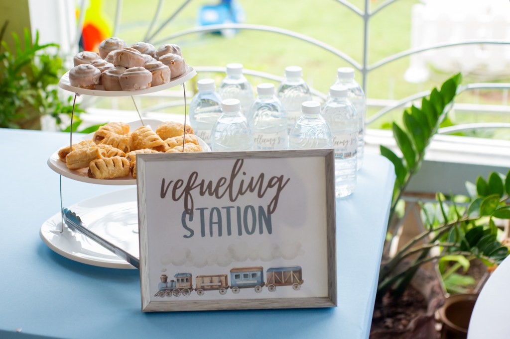 I had a few other bite sized desserts I purchased from the supermarket and finished off the dessert table with custom labelled water bottles. Just take a look at the sign and tell me the cookie girl didn’t snap. It’s the same train!! Unreal.