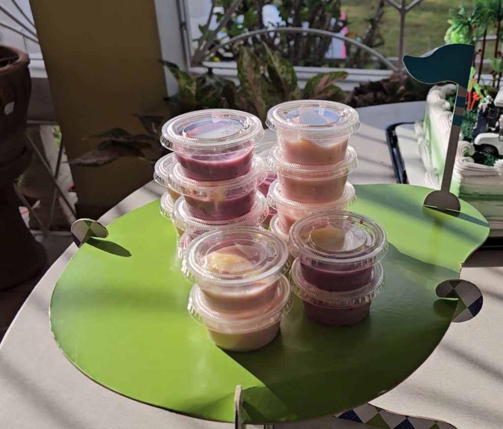 Yogurt and fruit made a simple but delicious fruit parfait, and these jello shots were the perfect hole-in-one.